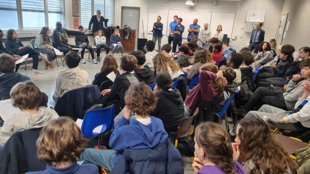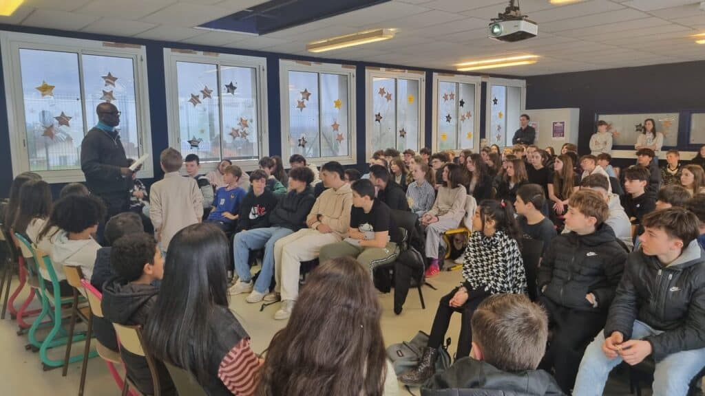 Dans le prolongement de la Conférence, il est aussi intervenu dans 2 collèges à La Réole et Bordeaux autour des thèmes du racisme et des discriminations.