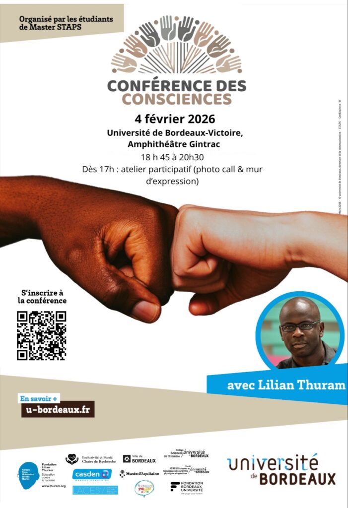 Invité d’honneur de l’Université de Bordeaux, Lilian Thuram a participé à une « conférence des consciences » organisée par la Chaire Inclusivité et Santé.